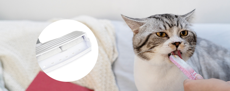 • Fântâna are încorporat un sistem de filtrare și circulație, care circulă constant apa pentru a-și menține curgerea și pentru a preveni contaminarea cu apă stagnată. Apa trece prin mai multe etape de filtrare pentru a elimina eficient impuritățile, clorul și mirosurile, oferind animalului dumneavoastră apă curată și proaspătă. Fiecare filtru este format din nailon și straturi de fibre, oferind capacități puternice de filtrare pentru a îndepărta eficient impuritățile fine, asigurând puritatea și sănătatea apei de băut a animalului dvs. de companie. Fântâna are, de asemenea, o funcție de vedere pe timp de noapte cu lumină LED moale încorporată, permițând animalului tău să găsească cu ușurință sursa de apă chiar și în condiții de lumină slabă. Această funcție de vedere pe timp de noapte nu numai că facilitează ca animalele de companie să bea apă în întuneric, dar le permite și proprietarilor de animale de companie să verifice oricând nivelul apei și să umple alimentarea cu apă în timp util.